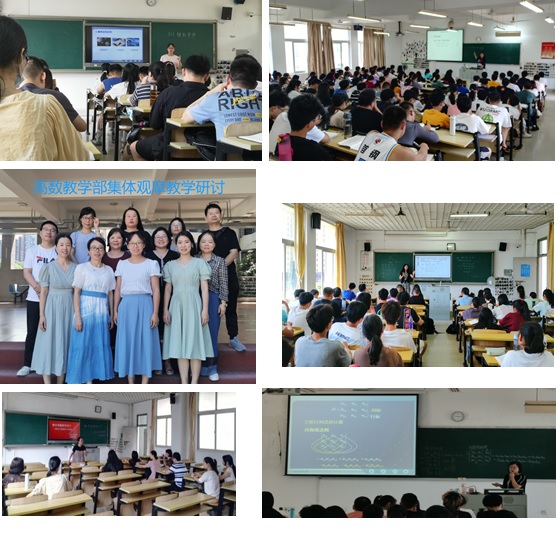 高数教学部全体教师(有课的除外)集体观摩了黄新丽、苏青、王璇、王镌老师的授课。四位教师教学准备充分,教姿教态自然,教学目标明确,教学层次较清楚,能够突出教学重点和处理教学中的难点,对教学内容的阐述深入浅出,善于启发引导,师生互动良好、课堂氛围融洽。