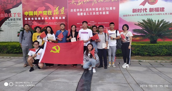 为庆祝中华人民共和国成立70周年,2019年10月15日beat365官方网站学生第一、第二党支部在福建博物馆开展参观“新时代新福建——福建省庆祝中华人民共和国成立70周年大型主题展”党日活动,主题展呈现出一幅新时代新福建建设新征程中持续奋斗、开拓前行的壮美画卷,党员们为中华人民共和国成立70年来福建经济社会发展的巨大成就所震撼,纷纷流连忘返。