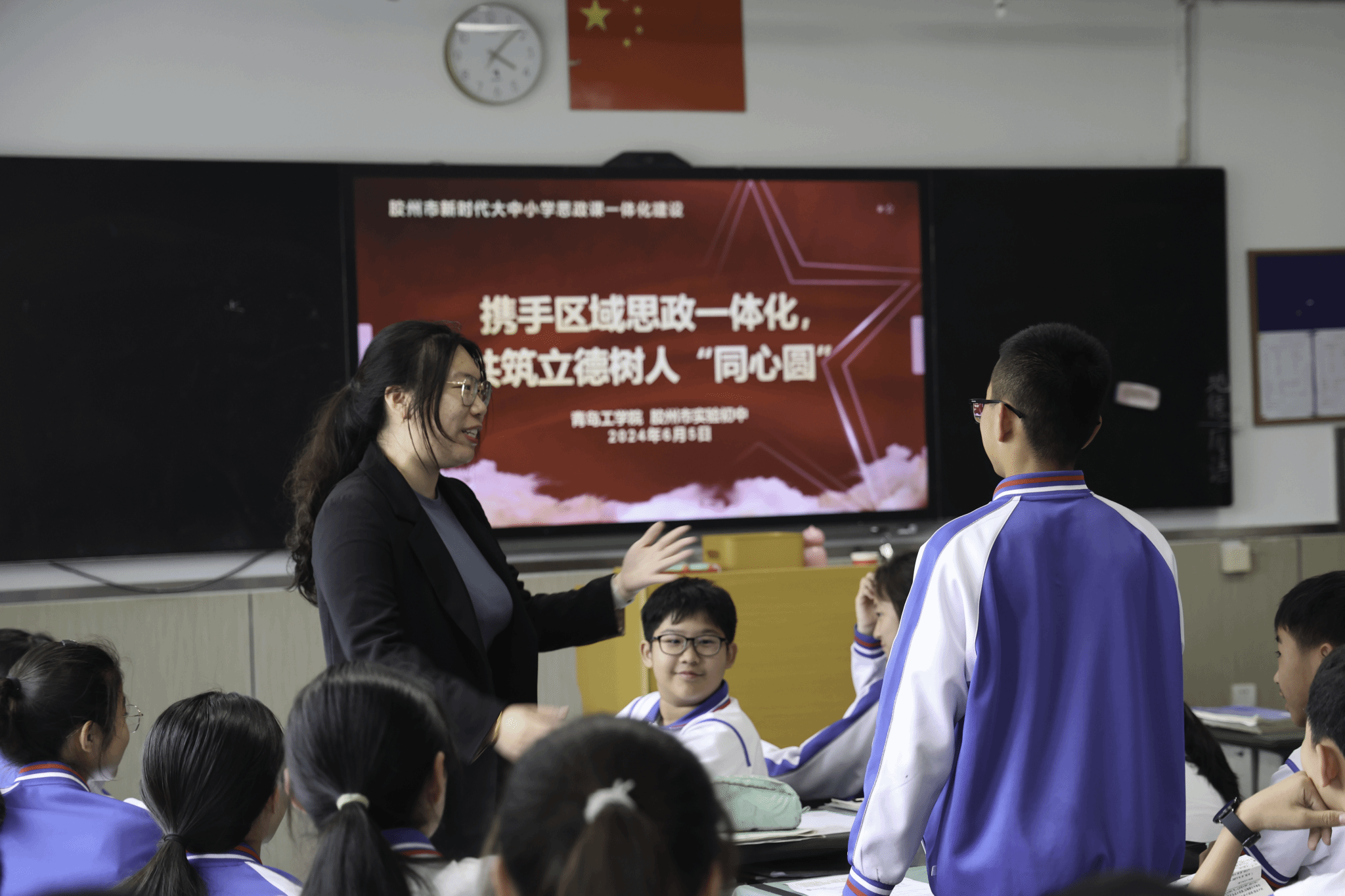 卢桂华用三个词概括了本次思政课的开展:精彩、出乎意料、意犹未尽 ,对我校教师的教学素养给予了高度评价。实验初中的教师们谈到,本次课充分调动了学生的积极性,培养了学生的理想信念,塑造了学生的世界观、人生观、价值观,让学生们秉持“穷则独善其身,达则兼济天下”的信念,不断提升自己的能力和素质,成为对社会有用的人。最后,两个学校就大中小思政课一体化的后续开展进行了简单的研讨,两个学校会继续加强合作,用实际行动回馈胶州。