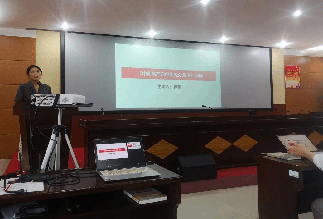 尹萌老师生动解读《条例》相关内容,强调要坚持“严”字当头,把严的基调、严的措施、严的氛围贯穿落实到管党治党横向到边、纵向到底,要切实提升教师队伍政治素养,要进一步强化政治铸魂体系,推动践行正确的政绩观和事业观,塑造积极健康的党内政治文化。