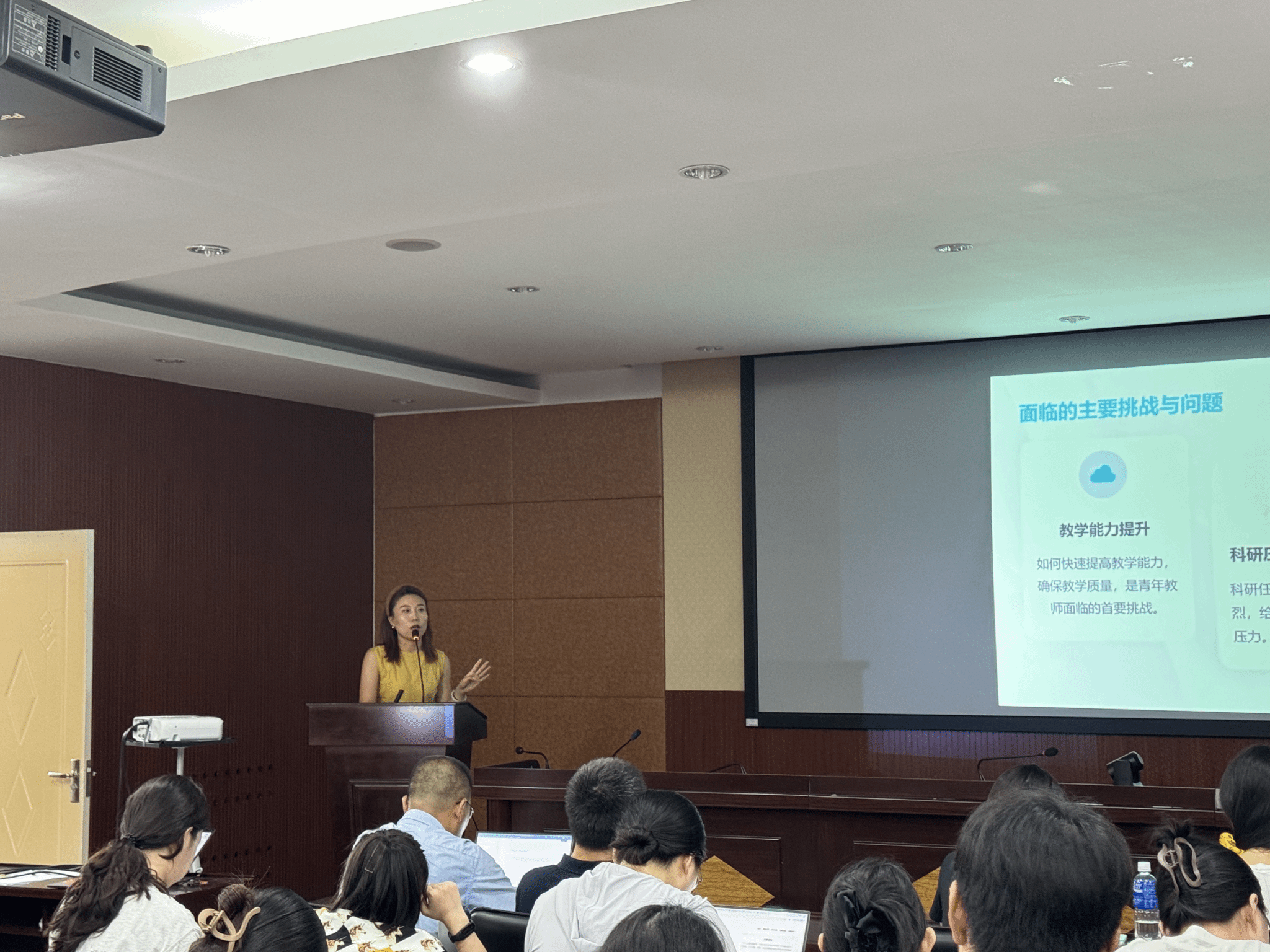 接着,中国近现代史纲要教研室尹萌教师向新教师们传授了线上课录制和智慧树平台的使用规则,帮助新教师们快速掌握线上课录制的高效技巧以及智慧树平台这一现代教育技术的使用规则。她详细介绍了平台的注册登录、课程创建、资源管理、作业布置与批改等基本功能,深入讲解了如何利用平台的数据分析功能来评估教学效果,以及如何通过互动工具与学生进行实时交流,构建更加活跃、高效的网络学习环境。