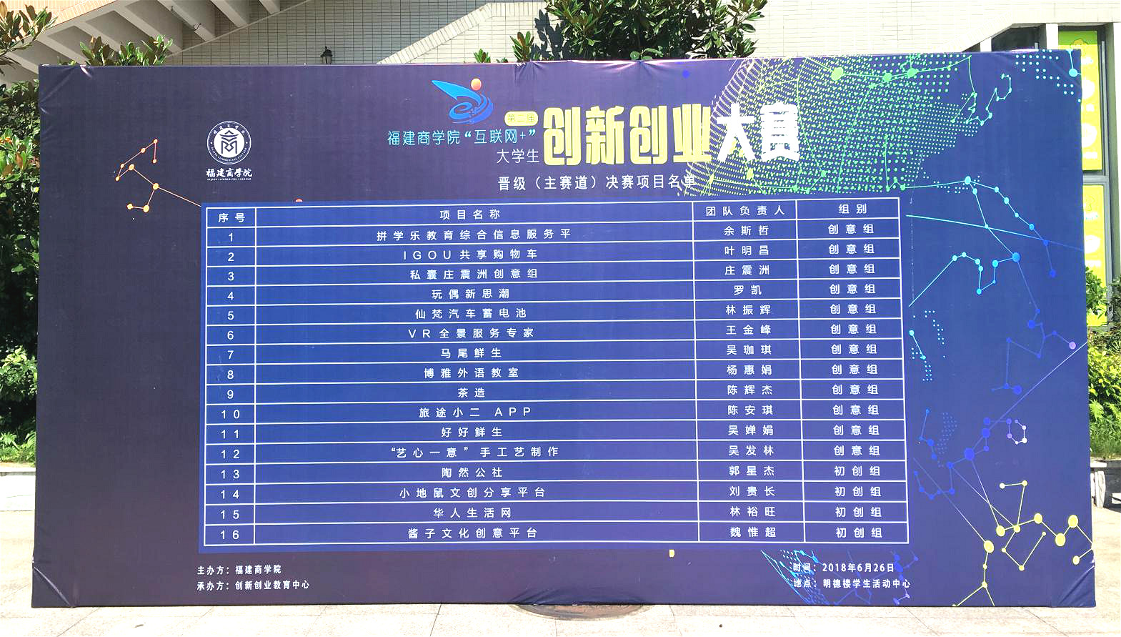 2018年6月26日下午,beat365官网“互联网+”大学生创新创业大赛决赛在连江校区大学生活动中心举行。创新创业大赛是学校开展双创教育的实践平台,也是践行“立德树人”的重要活动载体。我系在赛前通过广泛动员,本着全员参与的态度,圆满完成100个项目申报指标。其中“奇境幻想”幻想团队的“VR全景服务专家”项目通过激烈角逐,荣获本届大赛校赛铜奖,这也是我系成立以来第一次摘得此类赛事校赛奖项。