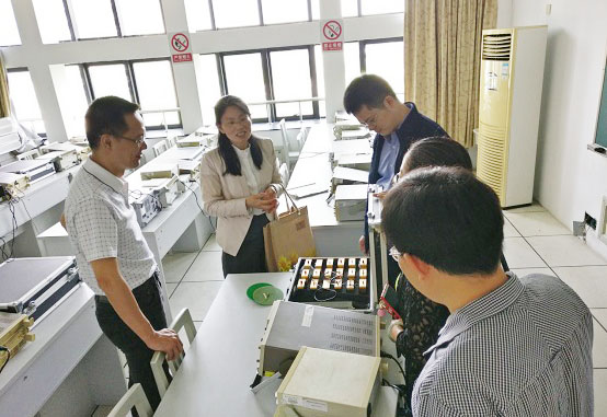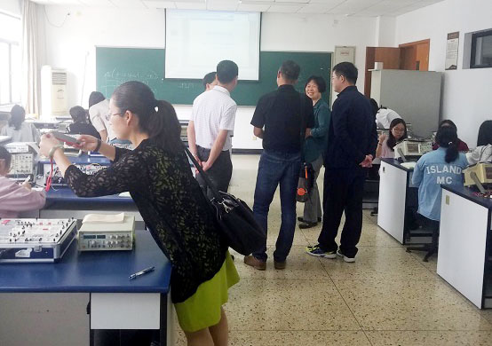 专业研讨过后,林勇教授一行还参观了浙江工商大学信息与电子工程学院相关实验室:2个基础教学实验室,4个本科专业教学实验室,2个学科实验室,其中网络与通信实验中心被列为浙江省实验示范中心,“新型网络标准及应用技术实验室”被列为浙江省重点实验室。与此同时,大家还深入实训教学现场观摩。