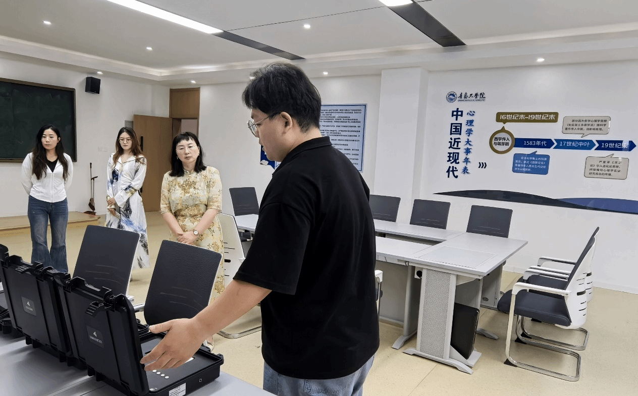 活动中,王宇老师聚焦实验室的基础配套设施、功能及应用价值等核心内容,进行了条理清晰、重点突出的介绍。他详细阐述了实验室各类仪器设备的配置情况、布局规划的科学性,深入讲解了实验室在应用心理学专业教学中所承担的功能,包括为学生提供实践操作平台、支撑课程实验教学、助力科研项目开展等,同时结合具体教学案例,凸显了实验室与人才培养目标的契合度,以及在提升学生实践能力和创新思维方面的重要作用。