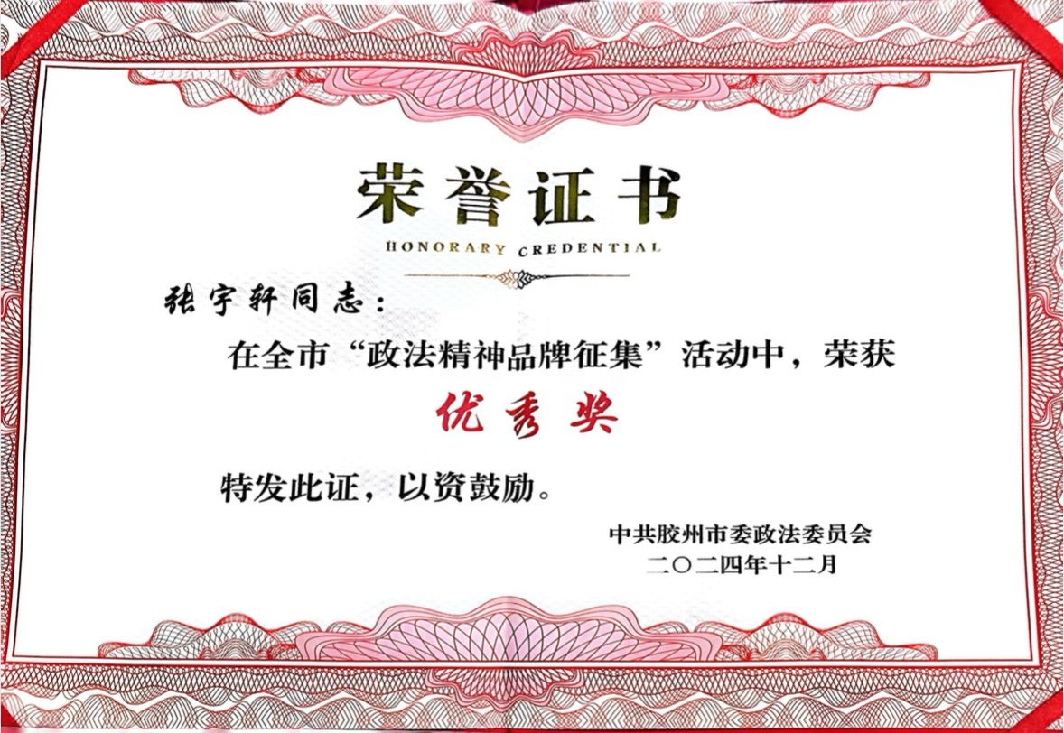 在实习期间,永利官网学生们积极投身于政法实践,并将实习经历写成报告。其中,永利官网2021届知识产权专业毕业实习生张宇轩同学,在检察院实习期间,认真参与市委政法委开展的政法精神品牌征集活动,并在举办的年度投稿评选活动中脱颖而出,荣获“优秀奖”。知识产权专业的同学们凭借扎实的法律知识和出色的文字表达能力在征稿比赛中获得嘉奖,作品内容深入浅出,观点新颖独特,展现了永利官网知识产权专业学生的优良风貌。