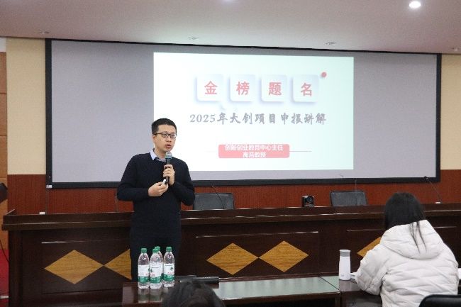 随后,高教授详细地为老师及学生们讲解了大创项目的主要内容、申报流程以及注意事项。大创比赛不仅是学生锻炼实践能力、提升综合素质的重要平台,更是培养创新精神和团队合作意识的有效途径。